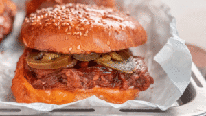 It’s easy to make, and the final result is a perfectly saucy, flavorful sandwich that’s just messy enough to be fun, but still neat enough to enjoy without too much hassle.