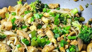 You may pre-cook chicken breast or use chicken leftover. Other vegetables are welcome as well.